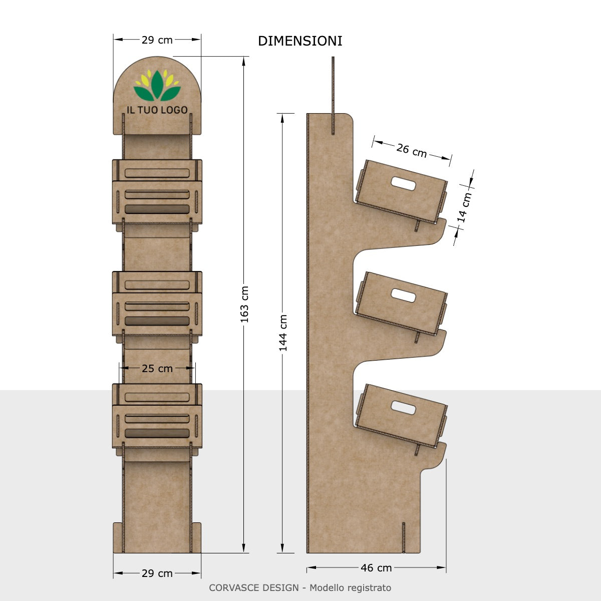 Design compatto e verticale per ottimizzare l’esposizione a terra