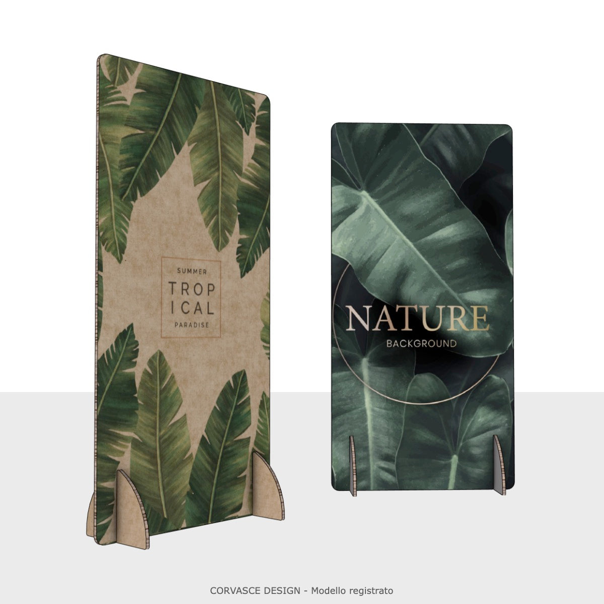 Eco design e arredo green: utilizzabile come elemento decorativo o informativo in showroom sostenibili.